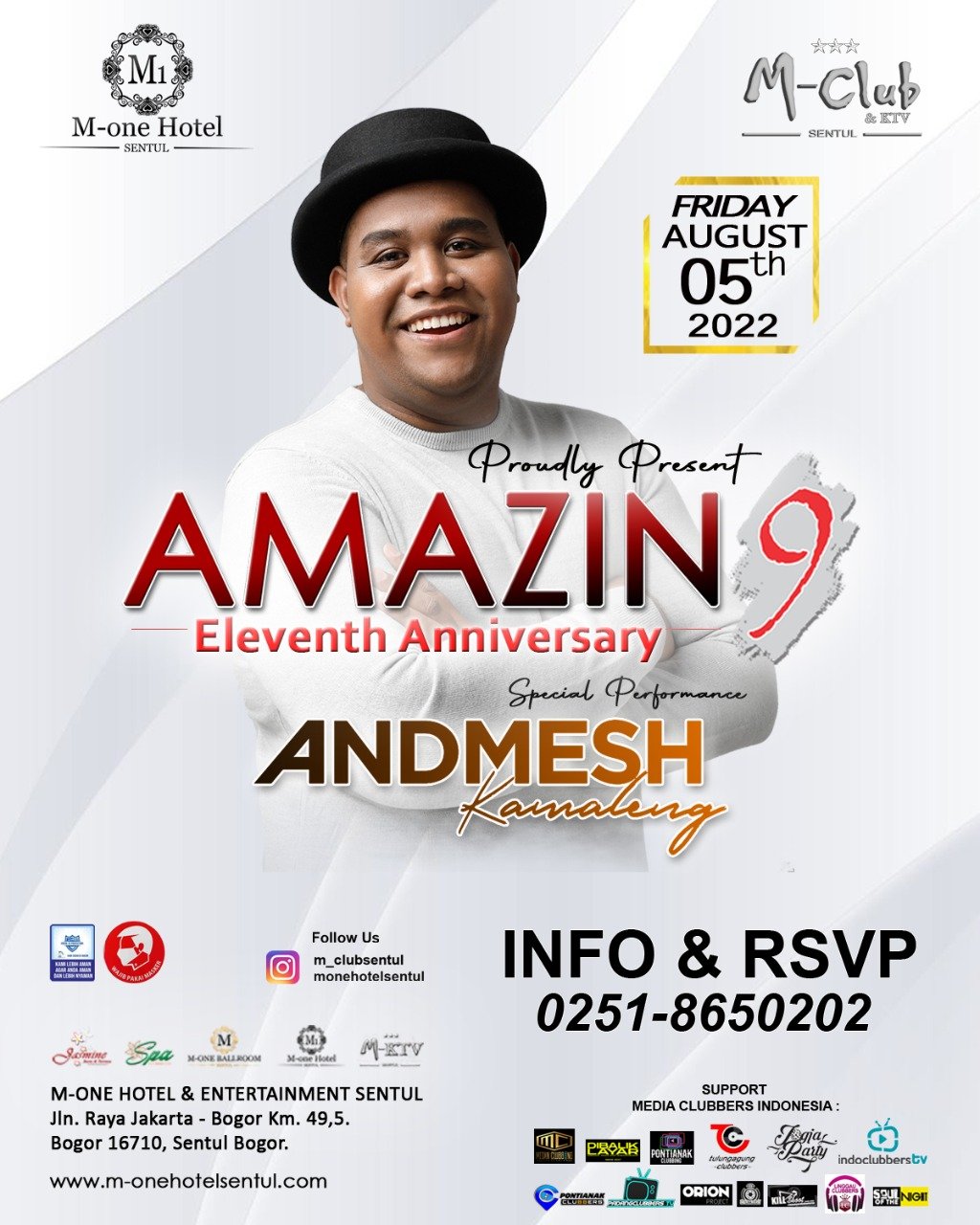 Penampilan spesial penyanyi solo bernama lengkap Jeandmesh Antonio Kamaleng ini bertajuk “Proudly Present AMAZIN9 Eleventh Anniversary”, dalam rangka menyambut hari jadi M-One Hotel & Entertainment.