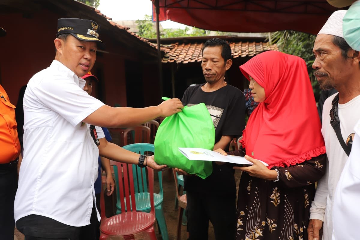 Asmawa Tosepu juga sekaligus menyerahkan bantuan santunan kepada para korban bekerjasama dengan Baznas Kabupaten Bogor.