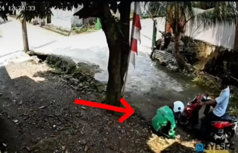 Dalam video itu, pria yang mengenakan jaket Ojol membawa sebuah paket dan menyimpannya di semak-semak halaman rumah. Namun, aksi itu diketahui oleh salah satu warga yang langsung megejarnya.