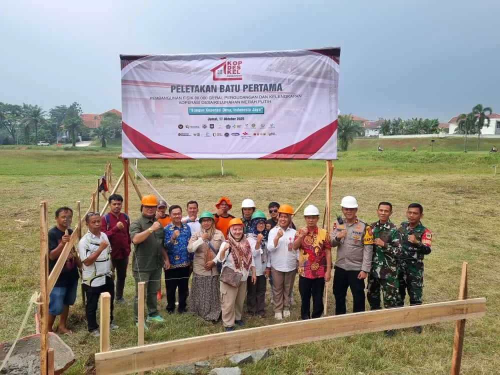 Kemang, BogorUpdate.com – Forum Koordinasi Pimpinan Kecamatan (Forkopimcam) Kemang menghadiri acara peletakan batu pertama (groundbreaking) pembangunan gerai pergudangan dan fasilitas pendukung Koperasi Desa Merah Putih (KDMP) di Perumahan Kahuripan, Desa Tegal, Kecamatan Kemang, Kabupaten Bogor, Jumat (17/10/2025).