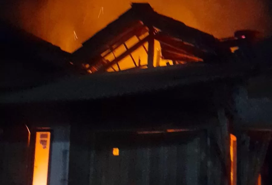 Akibatnya, kobaran api membumbung tinggi membakar bangunan tersebut.