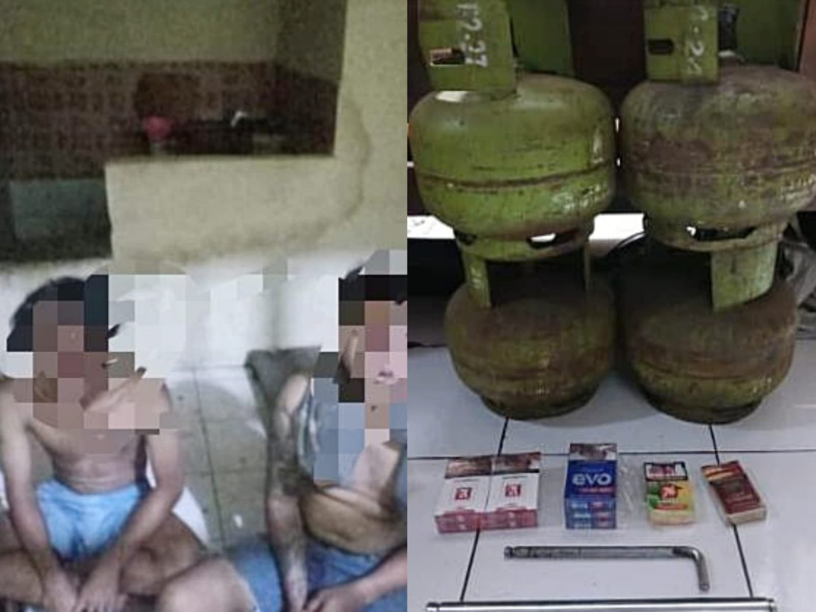 “Barang bukti yang berhasil diamankan yaitu Terdapat barang bukti yang diamankan ialah, 1 buah tongkat besi, 1buah kunci L ukuran besar, 4 buah tabung gas isi, 9 bungkus rokok berbagai merk,” ungkap Suharto.