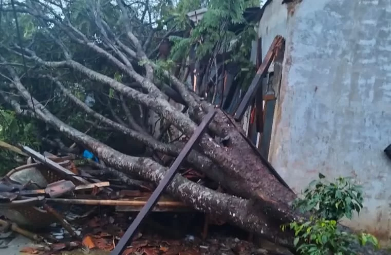 Peristiwa yang terjadi sekitar pukul 17.30 WIB ini menyebabkan atap rumah warga beterbangan, pohon tumbang, hingga ambruknya bagian belakang sebuah rumah berlantai dua.