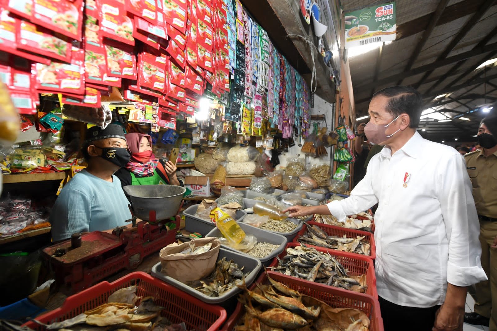 Turut mendampingi Jokowi dalam kegiatan di pasar tersebut yaitu Menteri Sosial Tri Rismaharini, Wakil Gubernur Jawa Barat Uu Ruzhanul Ulum dan Plt. Bupati Bogor Iwan Setiawan.