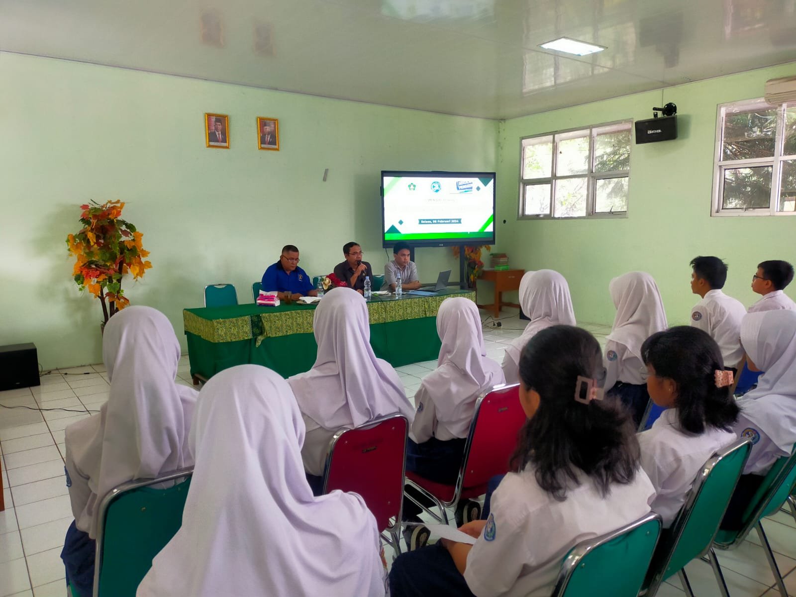 Ketua PWI Kabupaten Bogor, Subagiyo kembali memberikan penyuluhan kepada puluhan siswa dan siswi SMPN 3 Cibinong. (BU)
