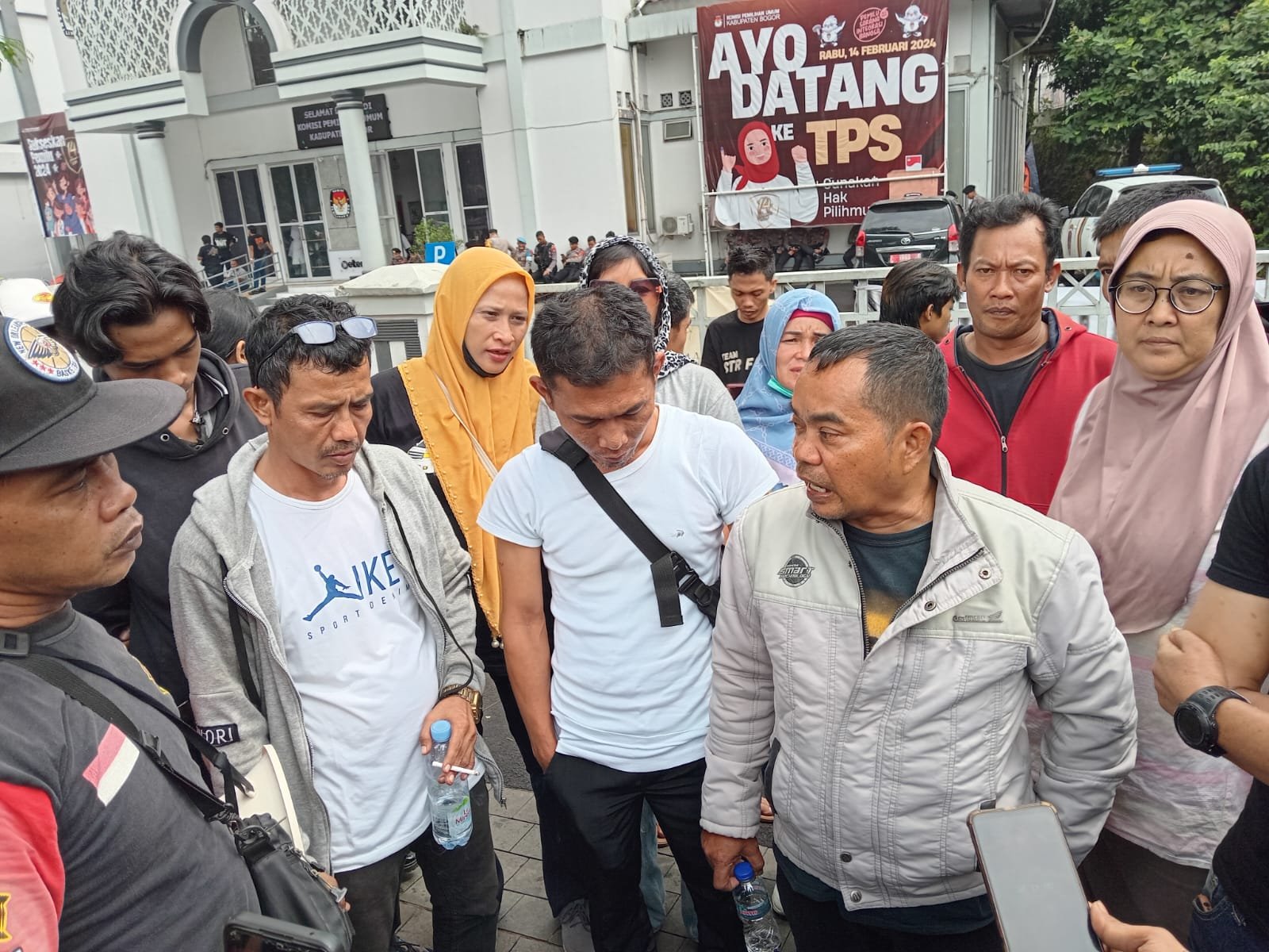 Massa aksi meminta negara menghentikan proses perhitungan suara pada ajang Pemilihan Presiden (Pilpres) dan Pemilihan Legisatif (Pileg) 2024 melalui aplikasi SiRekap.