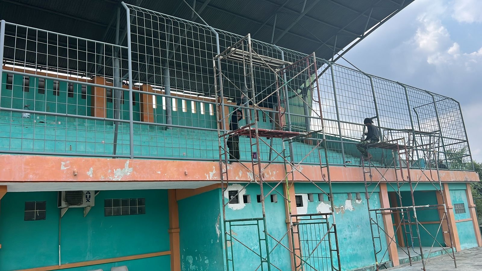 Sairan menambahkan, banyak item pekerjaan yang dilakukan pada revitalisasi Stadion Mini Cibinong kalo ini diantaranya pengecatan tribun dan semua dinding stadion, perapihan ACP, pengelasan dll.