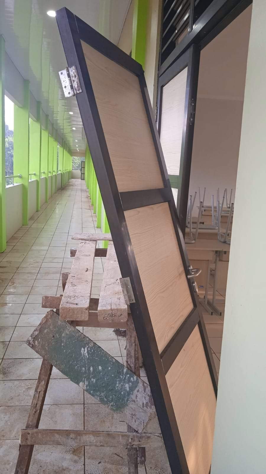 Dari pantauan BogorUpdate.com di lokasi terlihat pintu ruang kelas yang sudah copot akibat rusak dan beberapa ruangan terdapat genangan air. Hal yang sama pun terjadi di gedung Gelanggang Olahraga Masyarakat (GOM) yang bersebelahan dengan SMPN 4 Gunung Putri tersebut.