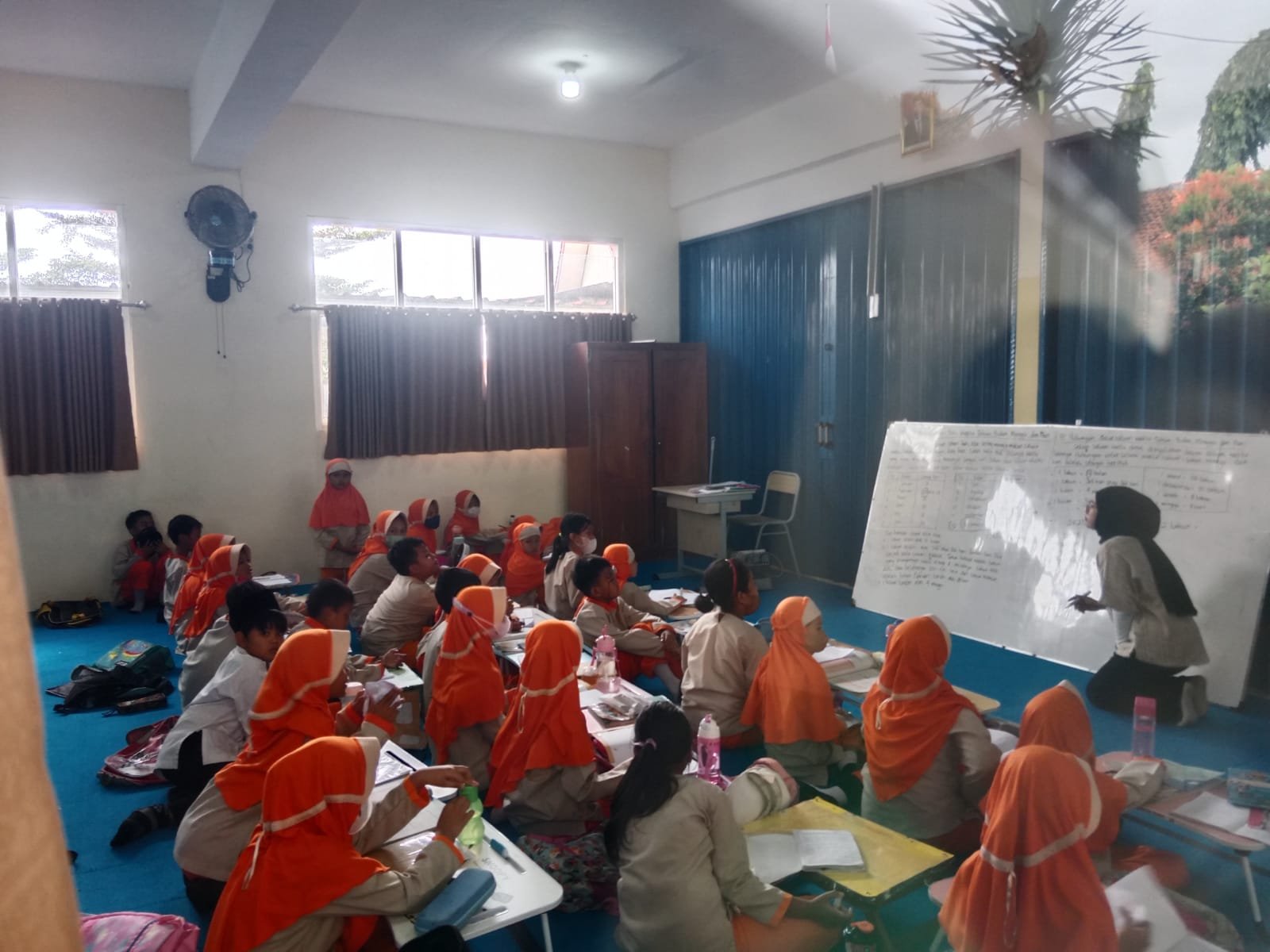 Kondisi murid SDN 02 Bojong Nangka, Kecamatan Gunung Putri Kabupaten Bogor yang belajar diatas karpet. (Foto: Ist).