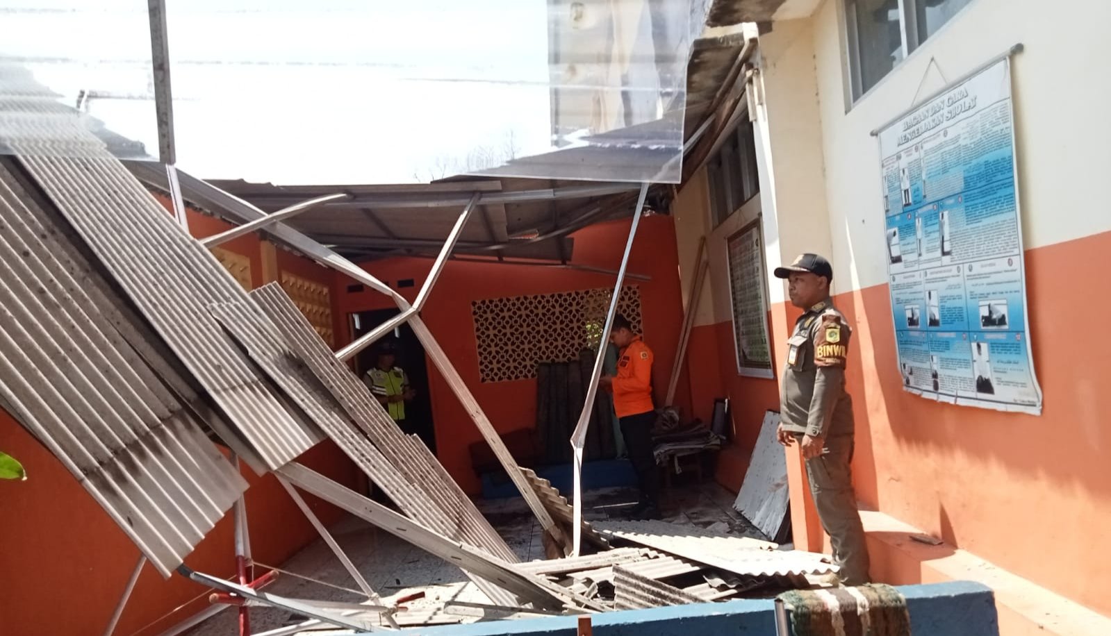 “Langsung menghantam bangunan sekolah, tadi saya bersama Badan penanggulangan bencana daerah (BPBD) Kabupaten mengecek bangunan SD itu, yang terkena reruntuhan musala tersebut atap yang percis dibelakang kelas,” ujarnya kepada wartawan.