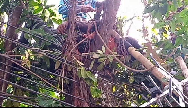 Gunung Putri, BogorUpdate.com – Naas, pekerja tewas tersengat aliran listrik saat memanjat pohon untuk penarikan kabel Optik milik Indosat.