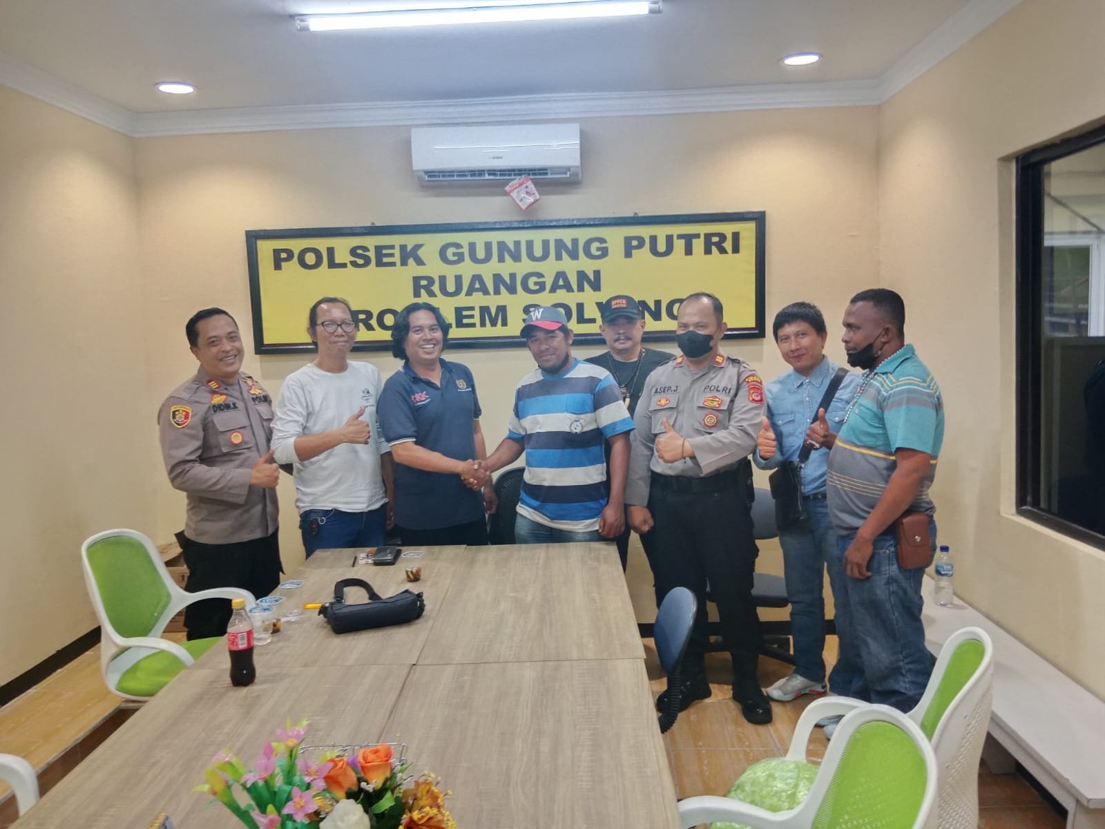 Saepul jurnalis BogorUpdate.com bersama pihak Matel sepakat berdamai di Polsek Gunung Putri, Kamis (15/6/23).