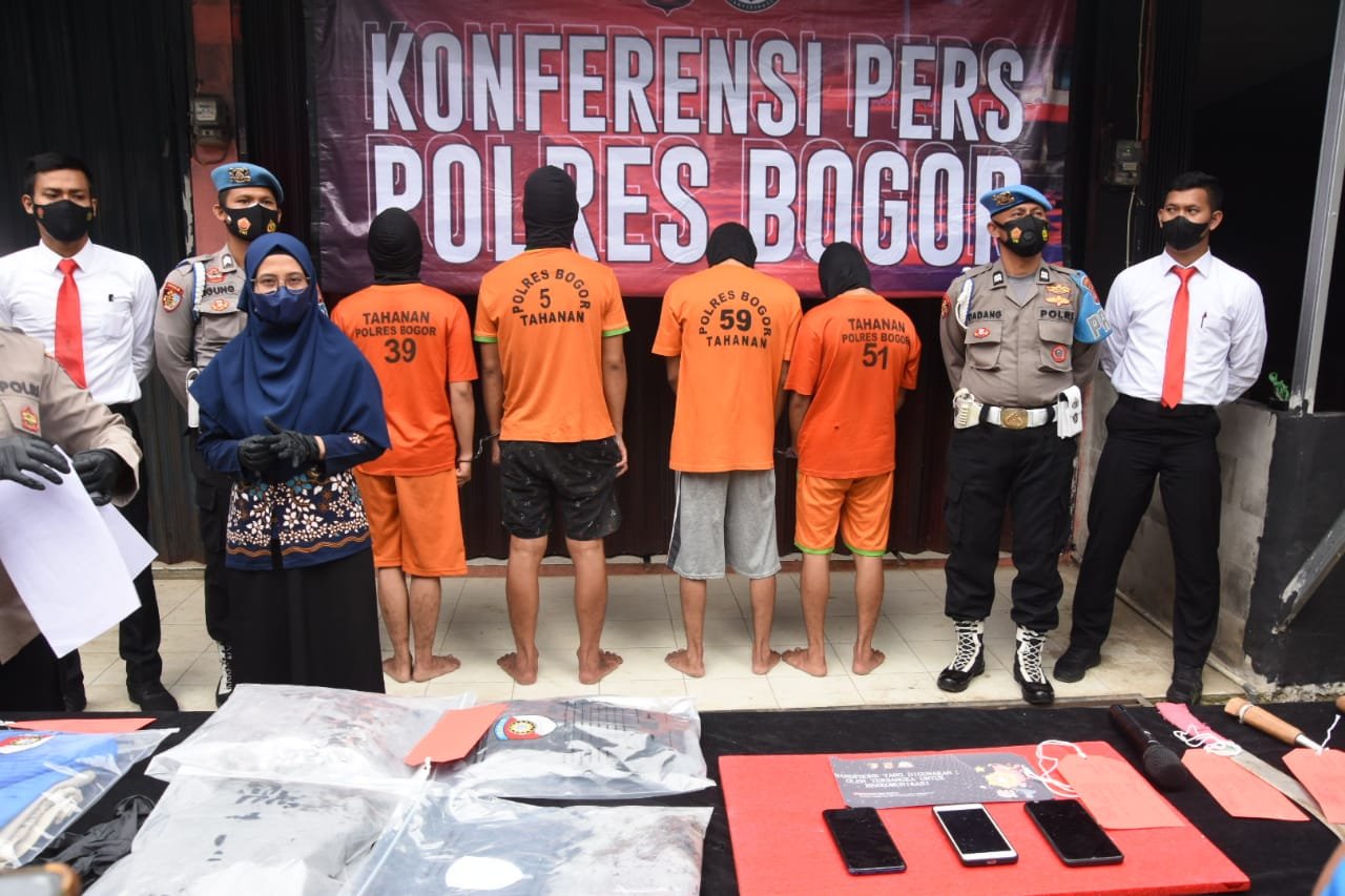 Dari kejadian tersebut Sat Reskrim Polres Bogor yang melakukan penyelidikan atas kasus tersebut berhasil mengamankan 5 orang pelaku penyerangan yakni UJ (19), UJ (21), FI (25), MR (20) dan RD (17).
