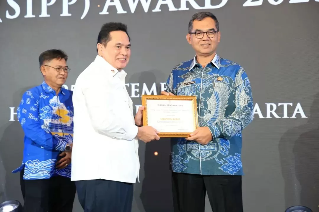 Sekda Kabupaten Bogor, Ajat Rochmat Jatnika, mewakili Pemkab Bogor menerima Penghargaan SIPP Awards 2025. (Dok. Humas)