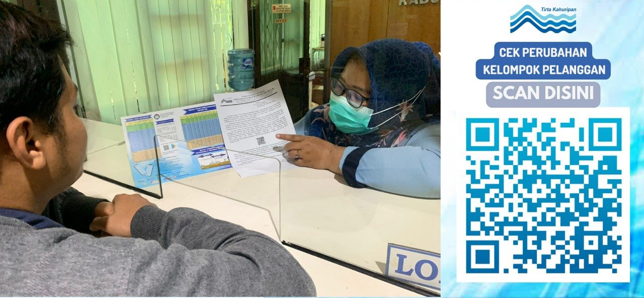 Untuk pelanggan yang ingin mengetahui perubahan struktur kelompok pelanggan dapat menggunakan tautan https://tirtakahuripan.co.id/cek_rekategori/ , atau QR Code (terlampir) atau menghubungi kantor cabang terdekat maupun melalui call center di nomor 1500-412 untuk informasi lebih lanjut.