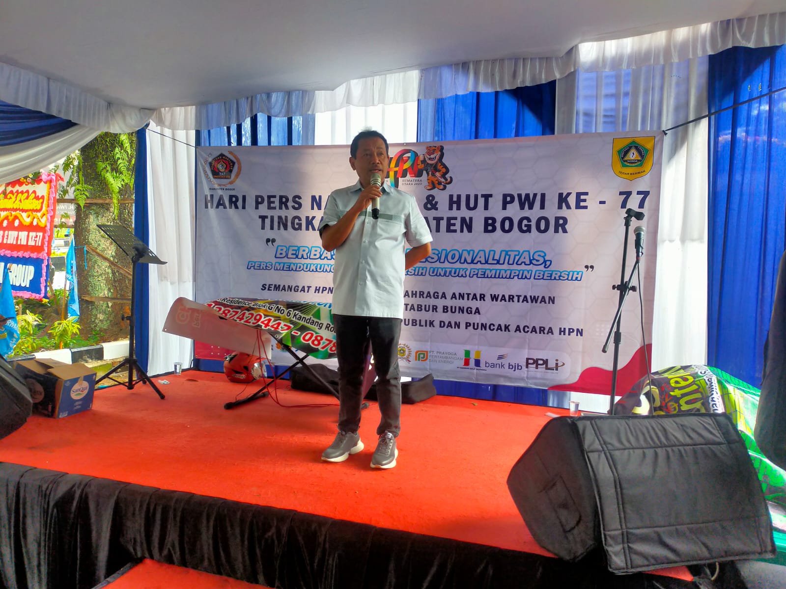 “Terima kasih sebanyak-banyaknya kepada bapak Rachmat Yasin beserta tamu undangan yang tidak bisa disebutkan satu persatu dari Forkopimda setempat yang sudah menyempatkan hadir dalam perhelatan puncak peringatan HPN dan HUT PWI ke-77 tingkat Kabupaten Bogor,” tuturnya.