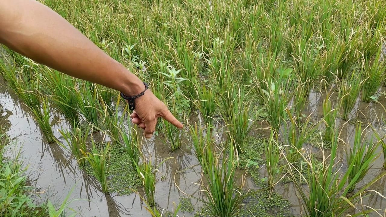 Bahkan tidak sedikit padi milik petani di Desa ini memerah yang menggambarkan padi-padi tersebut terancam mati.