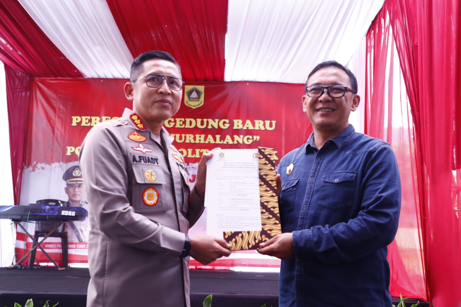 Plt Bupati Bogor, Iwan Setiawan (kanan) bersama Kapolres Metro Depok, Kombes Pol Ahmad Fuady (kiri) saat meresmikan kantor Polsek Tajurhalang, Selasa (6/6/23).