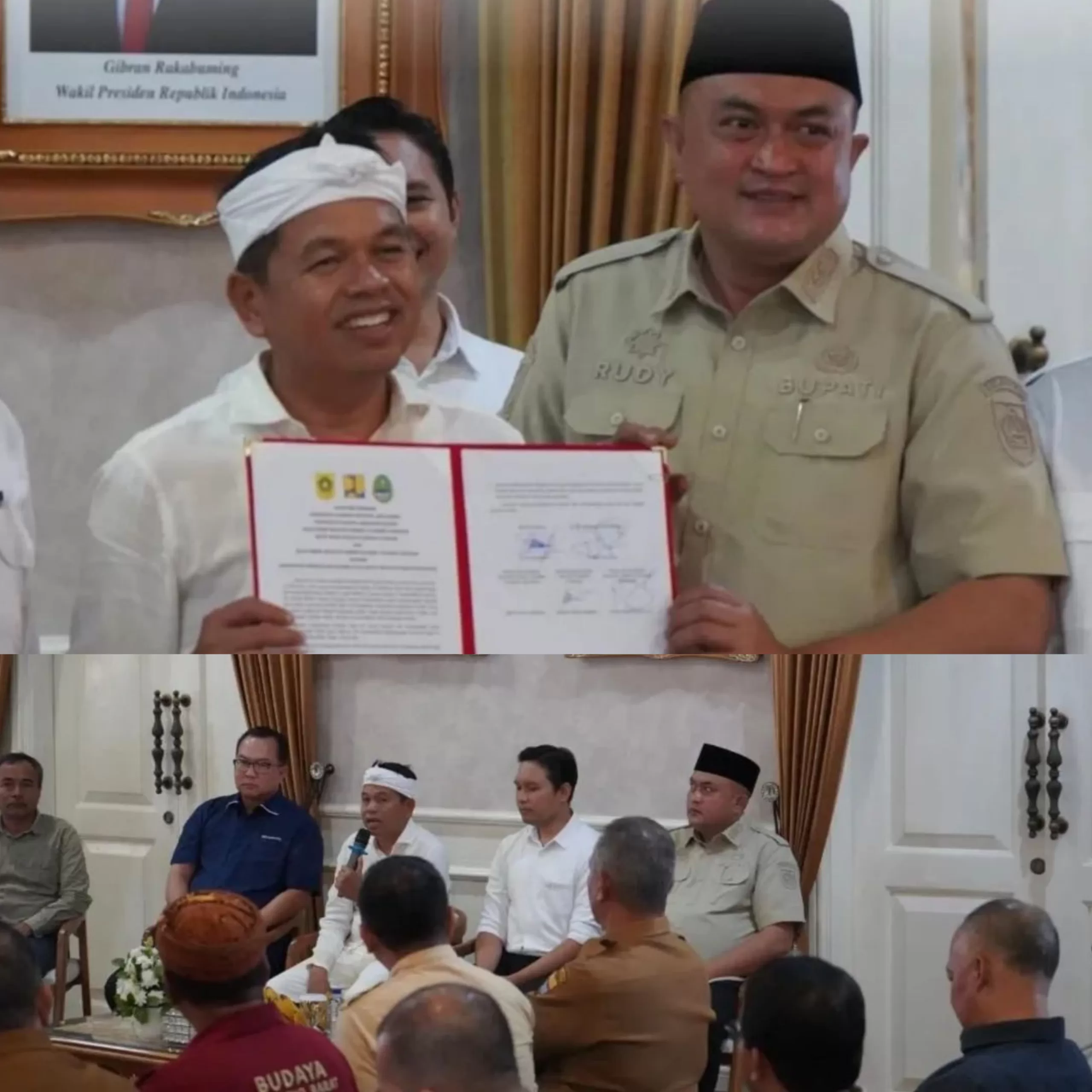 Cianjur, BogorUpdate.com – Bupati Bogor, Rudy Susmanto lakukan penandatanganan Nota Kesepahaman (MoU) dan Kesepakatan Bersama antara Pemerintah Kabupaten (Pemkab) Bogor, Gubernur Jawa Barat, Balai Besar Wilayah Sungai (BBWS), dan Pengelolaan Sumber Daya Air (PSDA), yang berlangsung di Pendopo Bupati Cianjur, pada Selasa (12/8/25). Penandatanganan ini bertujuan untuk memperkuat kerja sama lintas sektor dalam upaya penanganan bencana banjir di wilayah Kabupaten Bogor.