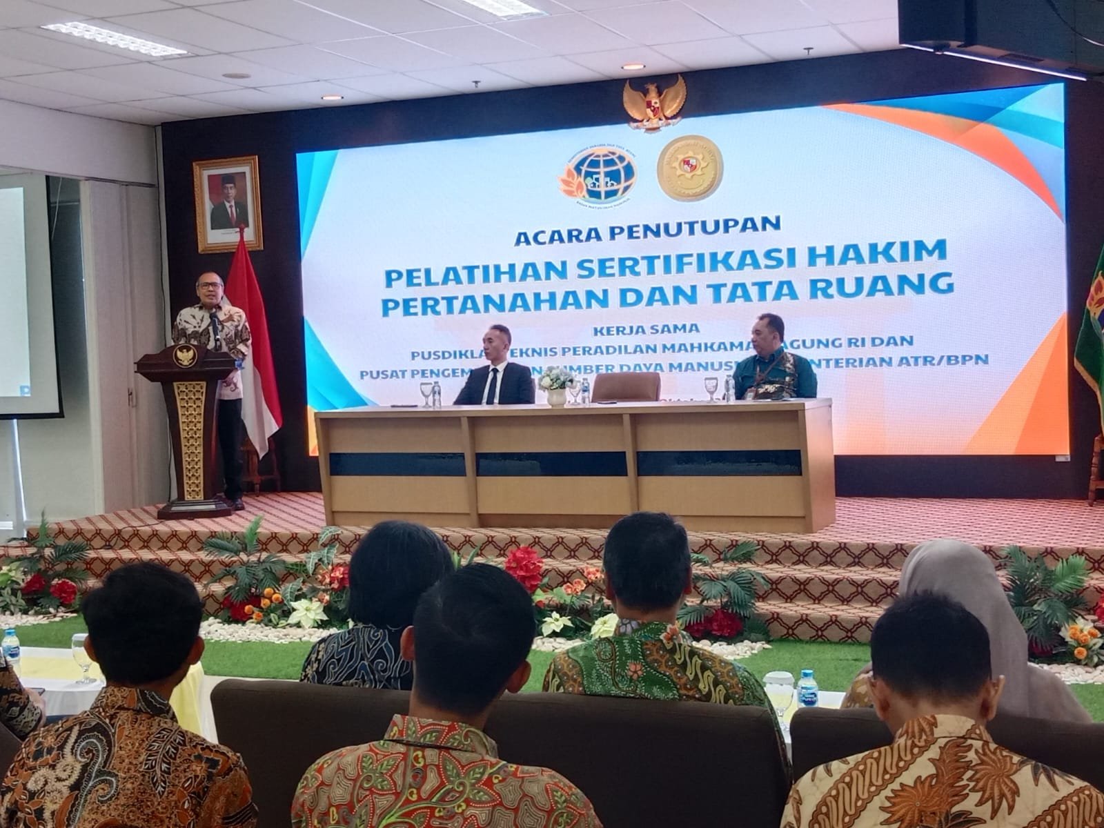 Gunung Putri, BogorUpdate.com – Pelatihan Sertifikasi Hakim Pertanahan dan Tata Ruang hasil kerja sama Mahkamah Agung Republik Indonesia (MA-RI) dan Kementrian ATR/BPN yang berlangsung di Pusat Pengembangan Sumber Daya Manusia (PPSDM) Kecamatan Gunung Putri, Kabupaten Bogor, resmi di tutup.