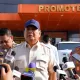 Dengan memakai baju safari coklat, celana hitam, dan peci hitam. Prabowo keluar dari pesawat disambut oleh Menteri Sekretariat Negara Prasetyo Hadi dan langsung menyalaminya.