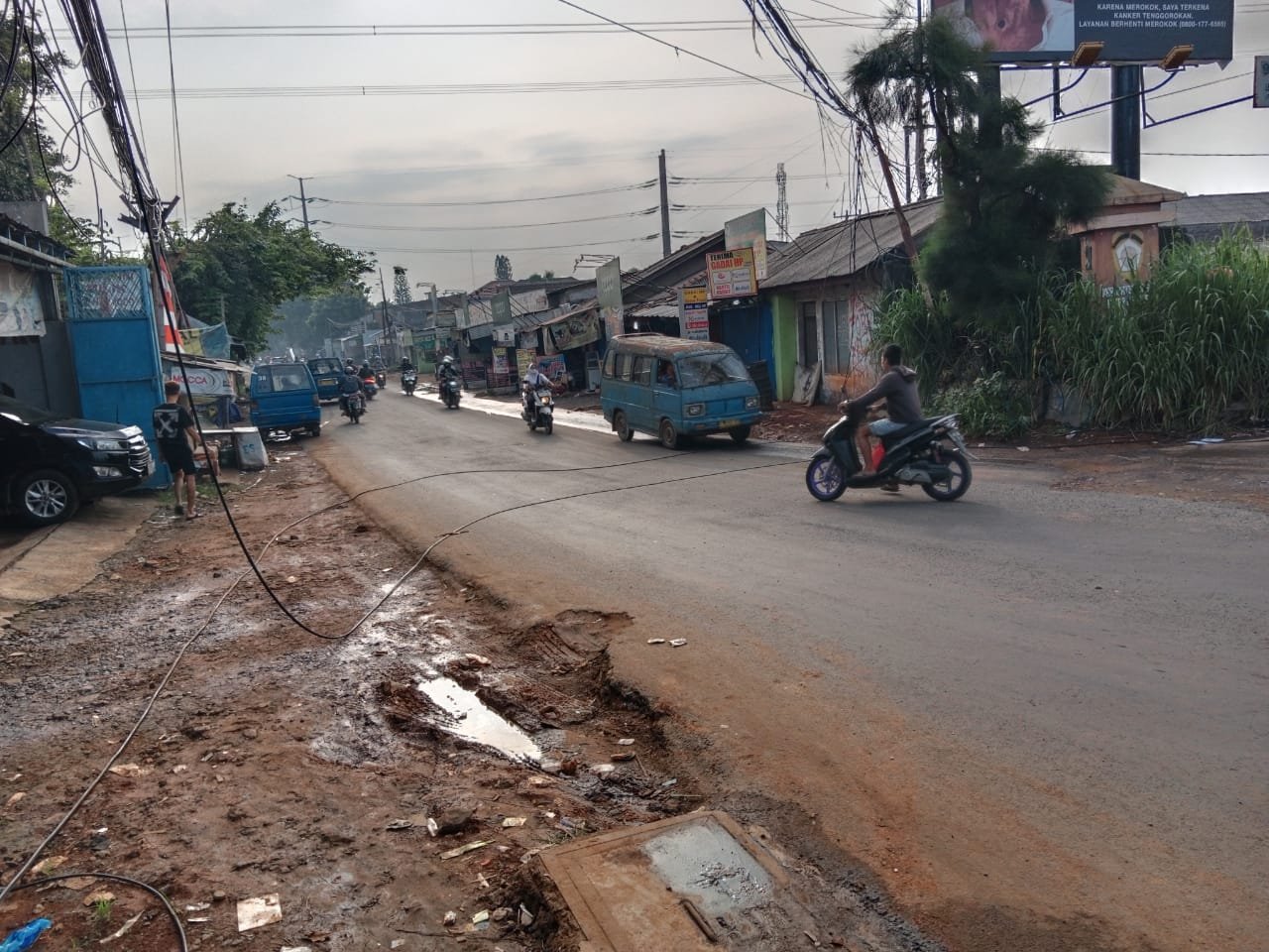 “Ya, mas saya sebenarnya was-was kalau melintasi jalan ini, terlihat kabel optik yang putus dari kemarin belum juga ada yang mengurusnya, sampai hari ini saya lewat sini malah nambah jadi 2 yang putus di tempat yang sama,” ucap Dayat kepada Bogorupdate.com