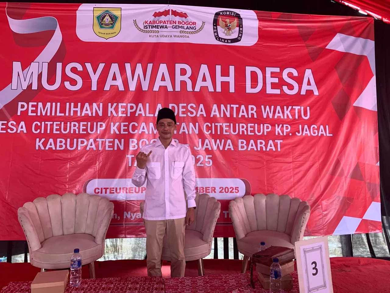 Citeureup, BogorUpdate.com – Gugun Wiguna resmi terpilih secara musyawarah sebagai Kepala Desa Antar Waktu (PAW) Desa Citeureup dalam musyawarah desa yang digelar di Kampung Jagal, Kecamatan Citeureup, Kabupaten Bogor, para Sabtu (27/9/25).