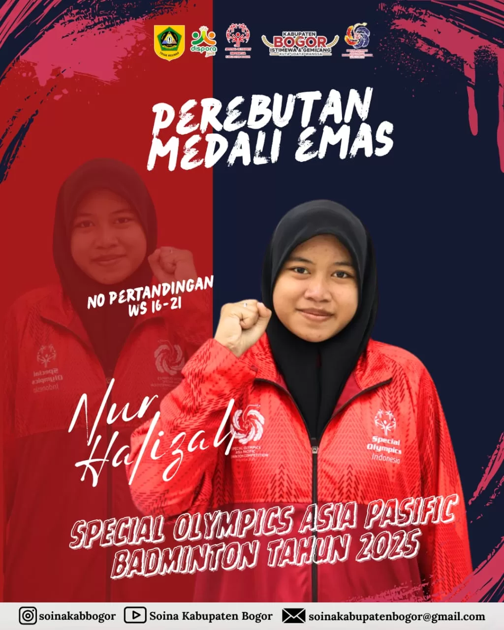Olahraga, BogorUpdate.com – Salah satu atlet Special Olympics Indonesia (SOIna) Kabupaten Bogor atas nama Nur Halizah yang tergabung dengan Timnas Badminton Indonesia berhasil masuk Grand Final pada ajang Special Olympics Asia Pacific (SOAP) Badminton Competition yang digelar Kualalumpur, Malaysia dari tanggal 16 sampai 21 September 2025.