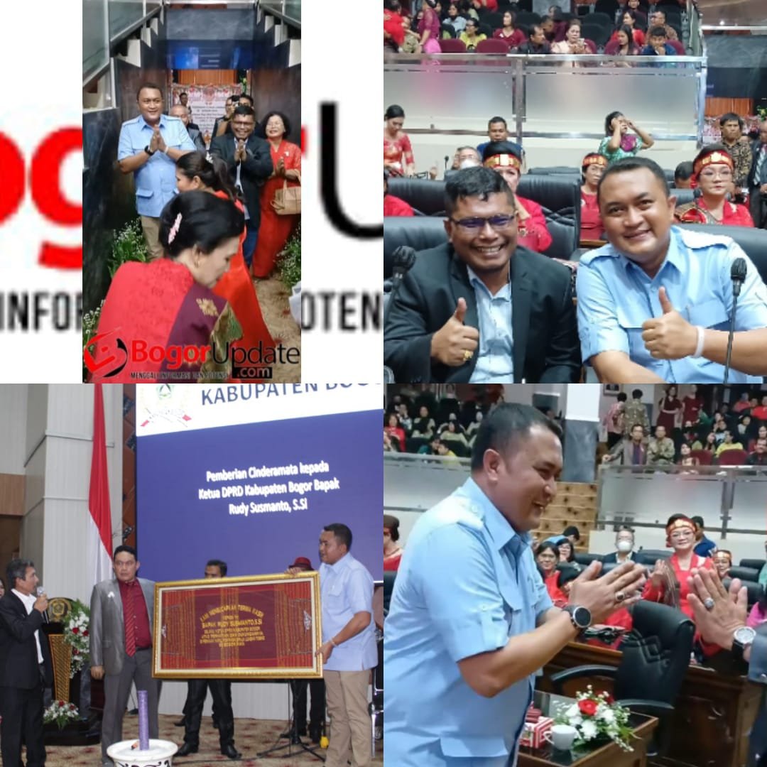 Momen Ketua DPRD Kabupaten Bogor, Rudy Susmanto menghadiri Perayaan Natal dan menerima cinderamata dari Punguan Tobing Se-Bogor Raya. (foto atas). (BU)