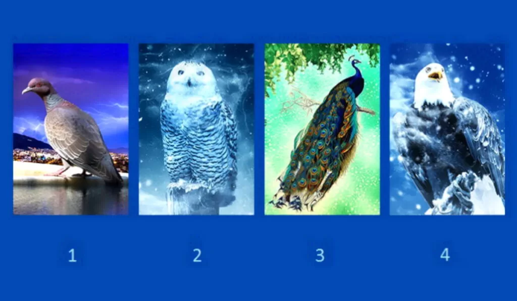 Pada gambar burung kamu dapat memilih antara burung merpati, burung hantu, burung merak atau burung elang yang kamu sukai. Penjelasan dari pilihan burung yang kamu sukai akan menjelaskan tentang bagaimana reaksi kamu pada saat situasi emosional serta kelebihan dan kekurangan kamu akan membuat keputusan pada situasi tersebut.