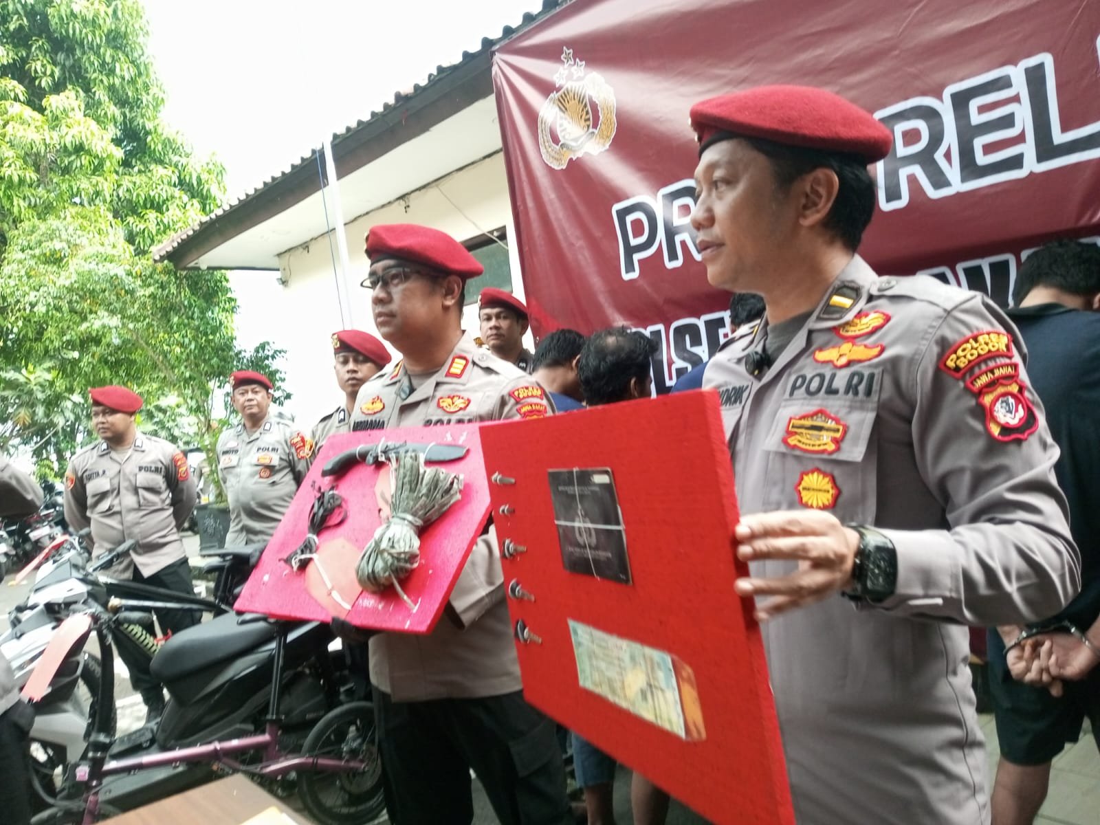 Lebih lanjut, dalam penggerebekan itu pihak kepolisian berhasil menyita sejumlah barang bukti gulungan tali rapia abu-abu, 8 tali karet, sepeda motor Honda Beat putih dan golok warna hitam bergagang kayu.
