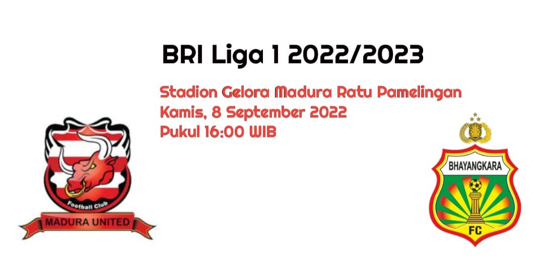 Pertandingan Madura United melawan Bhayangkara FC ini akan tersaji di Stadion Gelora Madura Ratu Pamelingan, pada Kamis (8/9/22) pukul 16:00 WIB, live di Indosiar dan live streaming di Vidio.