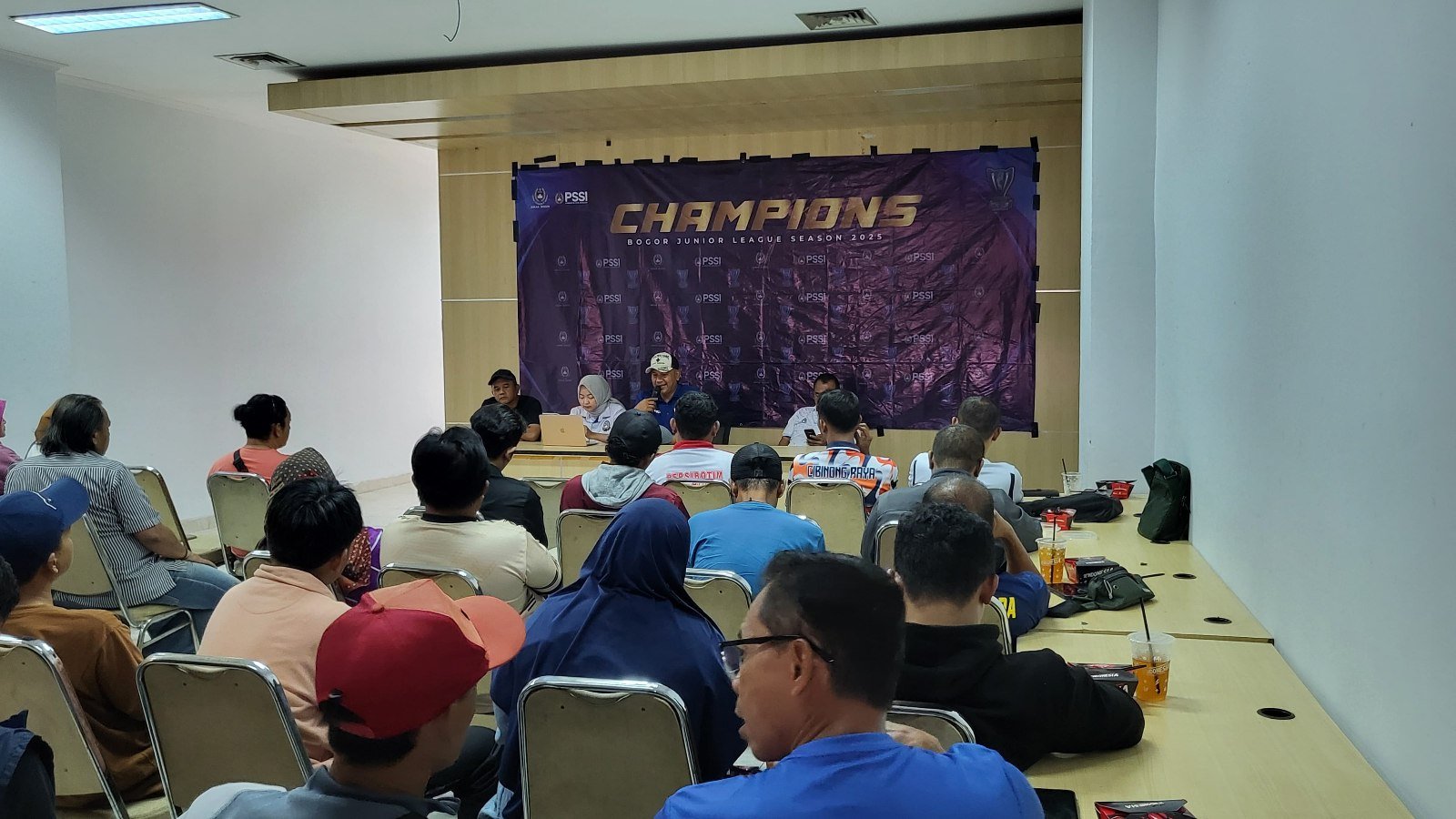 Olahraga, BogorUpdate.com – Sukses menggelar perhelatan Bogor Junior League (BJL) KU-13, jajaran pengurus PSSI Askab Bogor langsung tancap gas dengan menggelar Workshop BJL KU-15 dan KU Grassroot di ruang Media Center Stadion Pakansari, Cibinong, Gate 11 pada Rabu, (2/7/25).